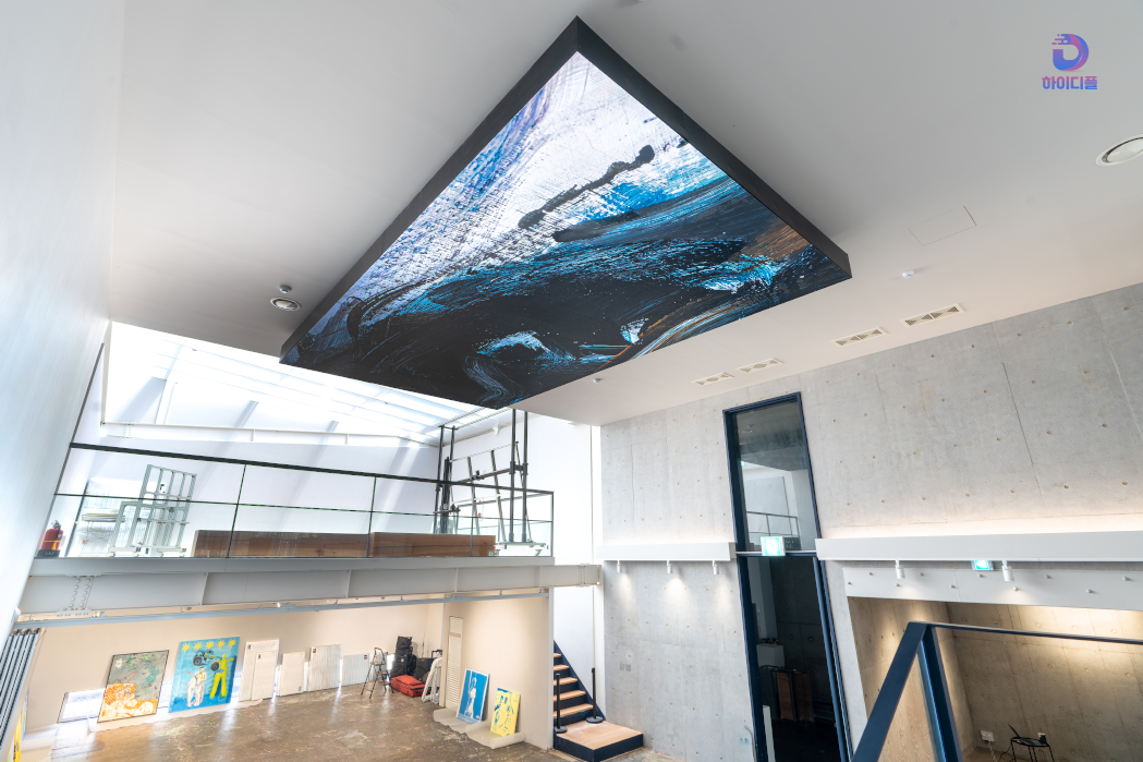 천장형 구조를 통해 일반적인 벽면 디스플레이를 넘어, 공간 전체를 활용한 몰입형 미디어 환경을 완성했습니다.